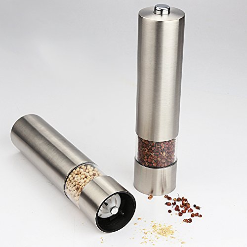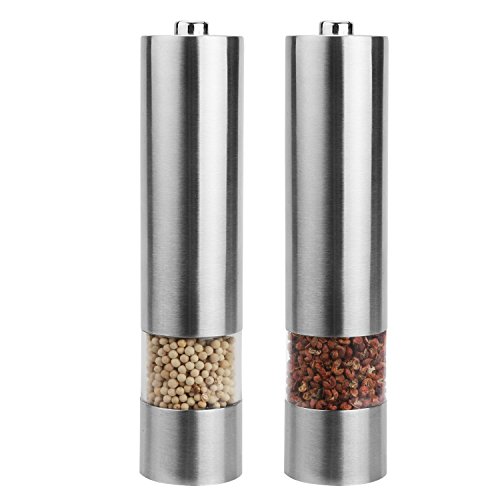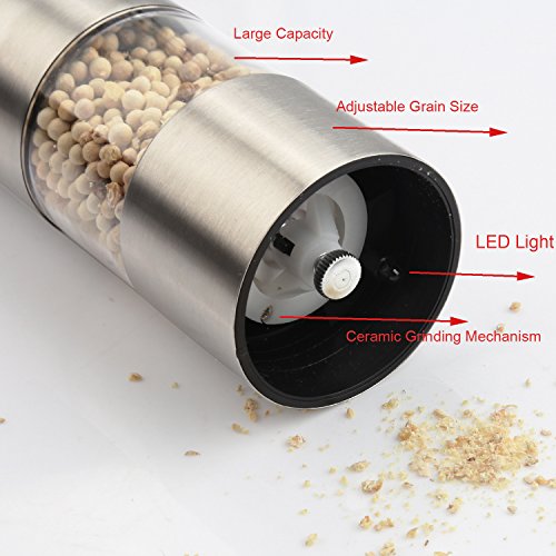 Miuly Electric Salt and Pepper Mill Grinder, Premium Stainless Steel, Battery Operated with LED Light, Ceramic Spice Grinder, Adjustable Grain Coarseness (Set of 2 ( Electronic))