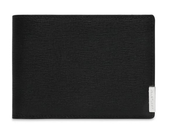 사이드 하단의 실버 바 장식으로 포인트를 주었으며 소가죽 소재를 사용하여 고급스러운 반지갑입니다.