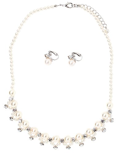 -. Feature : 【カラー】ホワイト / 【サイズ】Free / パールとビジューでデザインされたネックレスとピアスorイヤリングは 上品に華やかな装いに彩ってくれるセットアクセサリー。