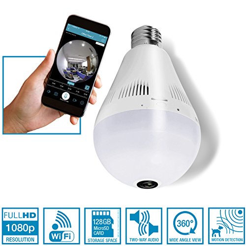 -. Title : 2017 Upgraded Light Bulb Camera NuCam 360, 1080P 360° WiFi Pet Baby Monitor LED Light Hidden Cam Support 128Gb Memory Card Recording Motion Detection Full HD Fisheye Panoramic Lens Two Way Talk