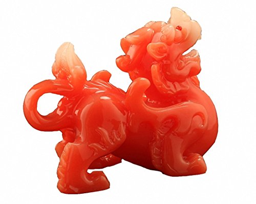Feng Shui Wealth Prosperity Red Pi Xiu / Pi Yao Statue Car Dashboard Decoration+ Free Set of 10 Lucky Charm Ancient Coins on Red String, Attract Wealth and Good Luck,Feng Shui Decor (Red)