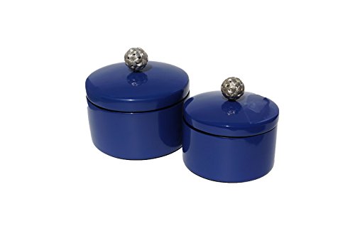 Bodhi Tree Collections Large Cylindrical Box with Silver Plated Ball Handle, Dazzling Blue