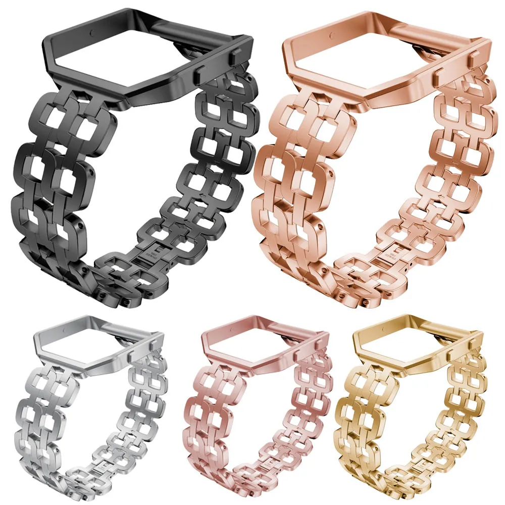 | [해외]럭셔리 디자인 스틸 스트랩 + 시계 상자 스테인레스 스틸 팔찌 스마트 시계 밴드 스트랩 골드 실버 + 케이스 커버 핏 비트 블레이즈 |