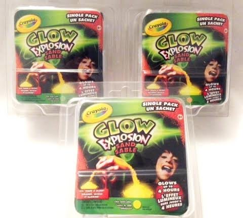 Product DescriptionCrayola Glow Explosion Sand Sable x 3 Single Pack ( 1 Orange 1 Yellow 1 Green)0