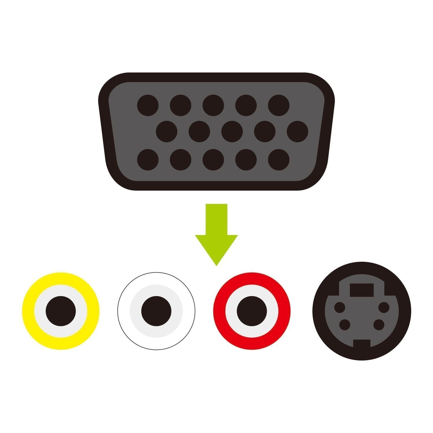Ideal for displaying PC output on an external monitor such as TV with RCA input.