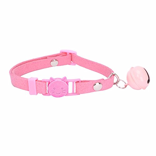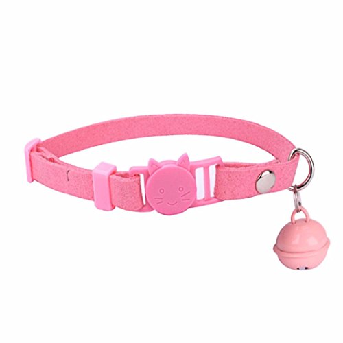 (LNGRY)/Pet Supplies/Collars, Harnesses Leashes/DIRECT FROM USA/LNGRY Exquisite Adjustable Dog Puppy Pet Collars Cat Shape Safety Pin Whit Bell (Pink)