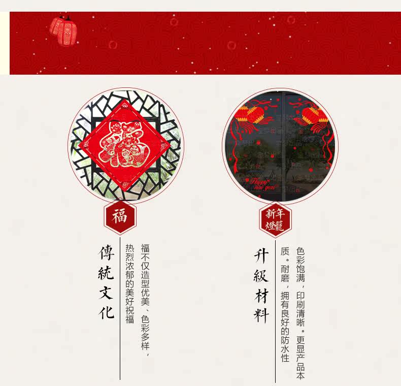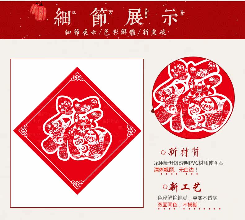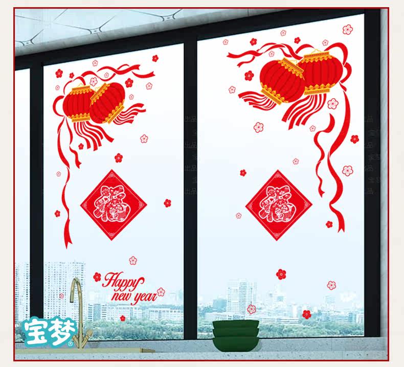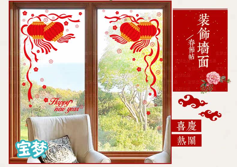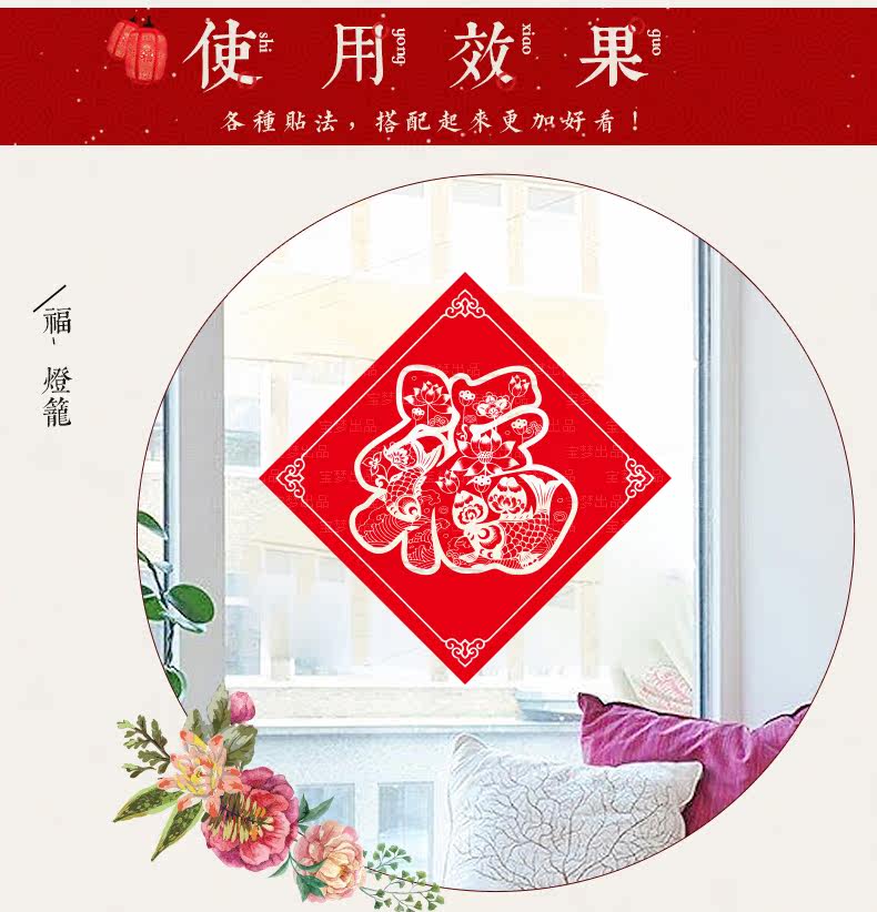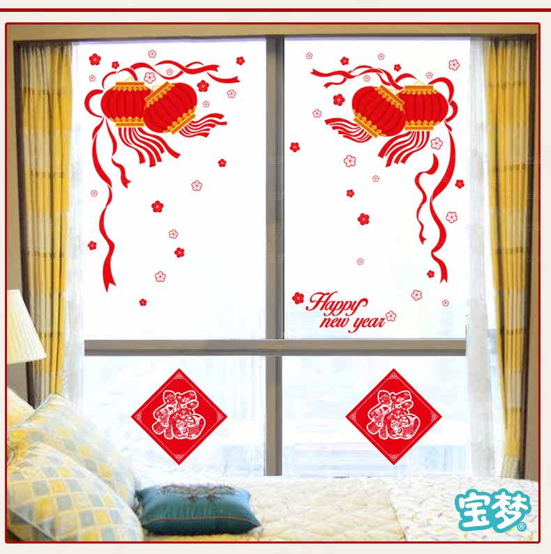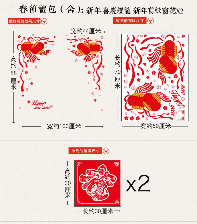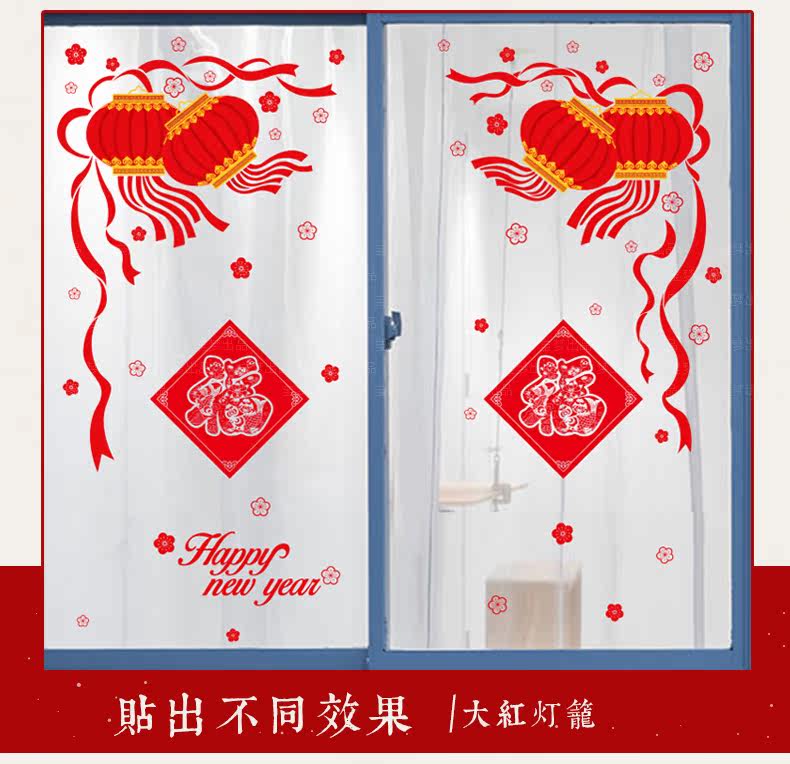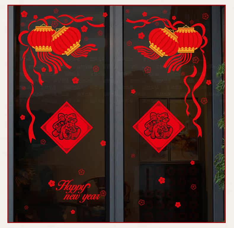 新年橱窗户玻璃门装饰品灯笼贴画春节喜庆福字剪纸窗花墙贴纸
