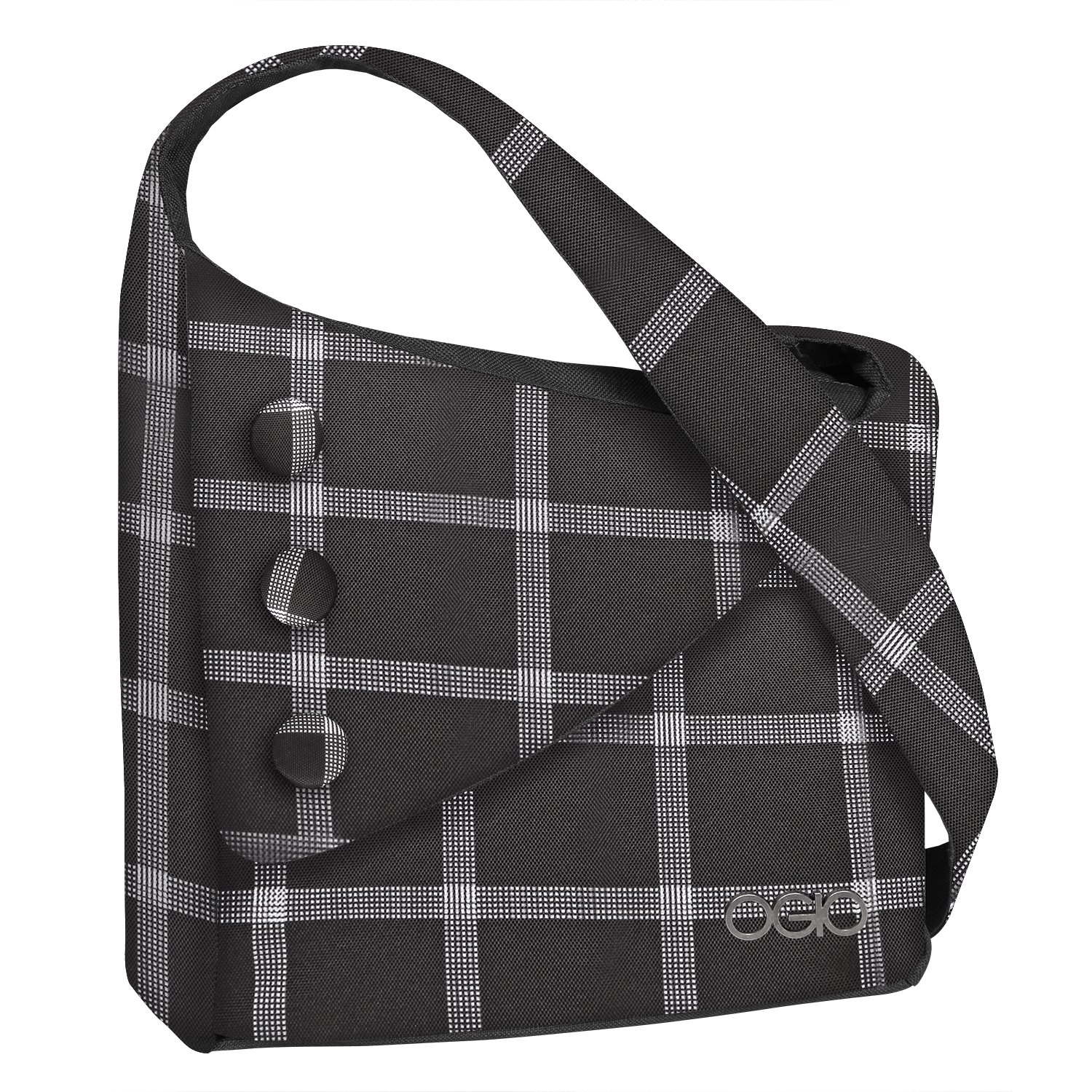 Shoulder bag of ladies button collection featuring three large buttons.