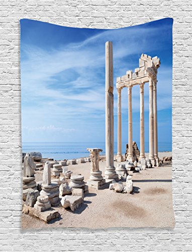 Ambesonne Home Decor Collection, Ancient Greek Temple with Clouds Greek Mythical Gods Ruins Europian Heritage Decorative, Bedroom Living Room Dorm Wall Hanging Tapestry, Cream Blue