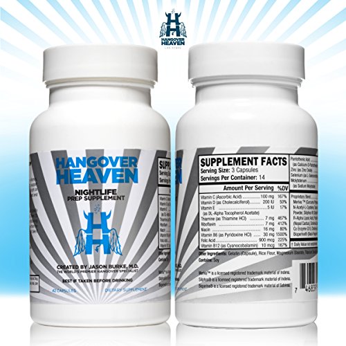 FORMULATED BY WORLDS ONLY HANGOVER DOCTOR FOR FAST RECOVERY - Dr. Jason Burke, a board certified anesthesiologist and founder of The Hangover Heaven in Las Vegas, formulated this custom, science-backed supplement to create the ideal combination of ingredients to significantly reduce your chance of hangovers. Stop risking your health with off-the-shelf, cookie-cutter supplements and experience the effects of a supplement designed with you in mind.