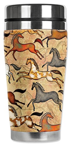 Mugzie 5402-MAX "Southwest Horses" Stainless Steel Travel Mug with Insulated Wetsuit Cover, 20 oz, Black