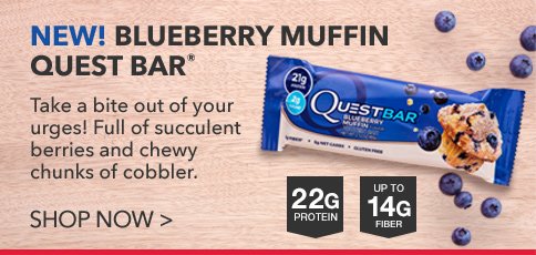 -. Binding : Health and Beauty -. Brand : Quest Nutrition -. Color : Quest Blueberry Muffin NEWEST FLAVOR 21 G of Protein Chunks of Blueberry Cobbler -. Feature : Try Quest's Brand New Delicious Blueberry Muffin Protein Bar, with chunks of Blueberry muffin inside each bar ! -. IsAdultProduct : 0 -. Label : Quest Nutrition -. Manufacturer : Quest Nutrition -. MPN : bm -. PartNumber : bm -. ProductGroup : Health and Beauty -. ProductTypeName : HEALTH_PERSONAL_CARE -. Publisher : Quest Nutrition -. Studio : Quest Nutrition -. Title : Quest Blueberry Muffin NEWEST FLAVOR 21 G of Protein Chunks of Blueberry Muffin