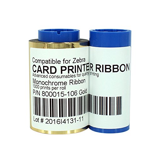 -. Feature : 1pc compatbile mono ribbon (not original) / Features: replaces Zebra 800015-106, gold mono ribbon, 1000 single-sided prints / Compatibility: for Zebra i Series and C Series card printers / For i Series: P310i, P320i, P330i, P330m, P420i, P430i and P520i, C Series: P300, P310C, P310F, P400, P420C, P500, P520C and P600