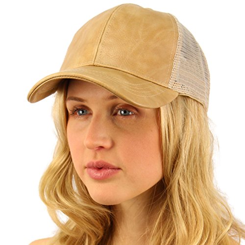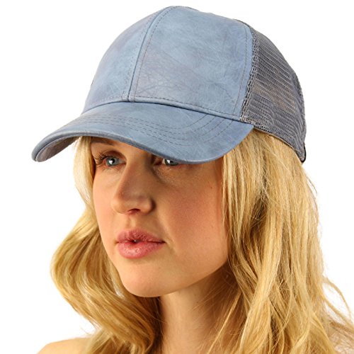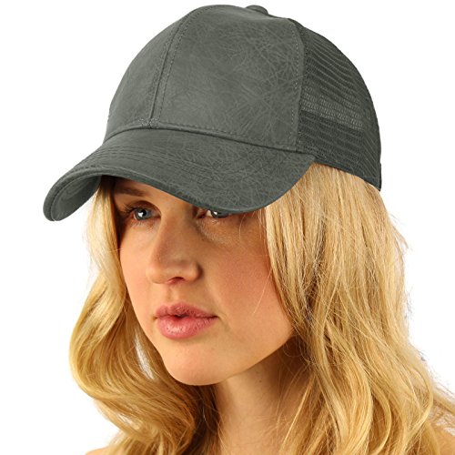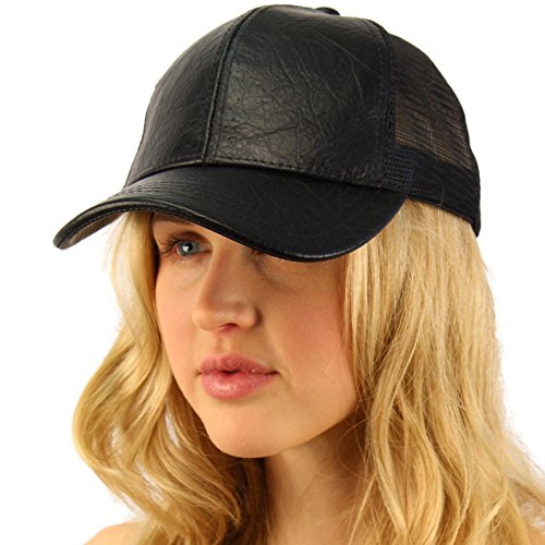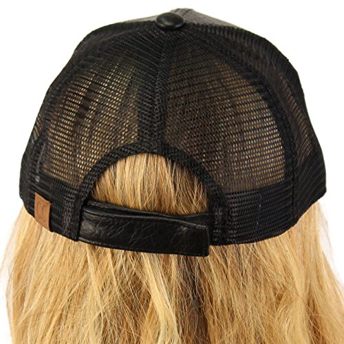 -. Title : CC Everyday Mesh Trucker Faux Leather Plain Blank Baseball Cap Hat Solid