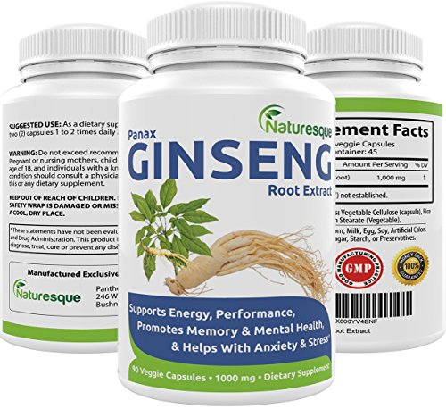 -. Binding : Health and Beauty -. Brand : Naturesque -. EAN : 0635648661735 -. Feature : MULTIPLE HEALTH BENEFITS WITH BEST VALUE! 1000 MG / DAILY - 90 CAPS - All natural Panax Ginseng is an effective formula that helps stabilizing blood pressure, improving blood circulation and general sense of well being, it also helps reducing symp related to menopause. Our product delivers 1000 mg of pure Panax Ginseng root extract per daily intake, and contains a high potency of ginsenosides. / FOUR TIMES MORE POTENT - Our powerful Panax Ginseng is a 4:1 extract (4 times more concentrated than the root itself) concentrates these helpful benefits into every single capsule. / 100% PURE PANAX GINSENG EXTRACT: Totally PURE KOREAN RED Ginseng is a plant that today is cultivated throughout Asia though its origins can be traced to China over 5000 years ago. Our pure extract is sourced from proven, top quality growers across Asia's most fertile Panax Ginseng growing regions. / MAY IMPROVE MENTAL AND PHYSICAL PERFORMANCE - Panax Ginseng contains actoprotectors which are substances that enhance the body's stability against physical loads without increasing oxygen consumption or heat production, increasing the efficiency factor. It is used for improving thinking, concentration, memory and work efficiency, physical stamina, and athletic endurance. / MAY BOOST IMMUNE SYSTEM - Scientific research shows that water-soluble polysaccharides and oligosaccharides from Korean ginseng have a number of supportive effects on immune and host defense functions. It's a FUNCTIONAL HEALTH FOOD used globally as a natural remedy. Our Panax Ginseng is sourced from the finest growers in Asia and manufactured here in the USA in state-of-the-art, FDA inspected and GMP certified facilities to ensure potency, quality and safety. 100% MONEY BACK GUARANTEE. -. IsAdultProduct : 0 -. Label : Naturesque -. Manufacturer : Naturesque -. MPN : ginseng-90 -. PackageQuantity : 1 -. PartNumber : ginseng-90 -. ProductGroup : Health and Beauty -. ProductTypeName : HEALTH_PERSONAL_CARE -. Publisher : Naturesque -. Studio : Naturesque -. Title : Pure Panax Ginseng Root Extract 500 mg 90 Veg Capsules by Naturesque 4 times more potent, helps improving mental & physical performance, and boosting immunity system. -. UPC : 635648661735