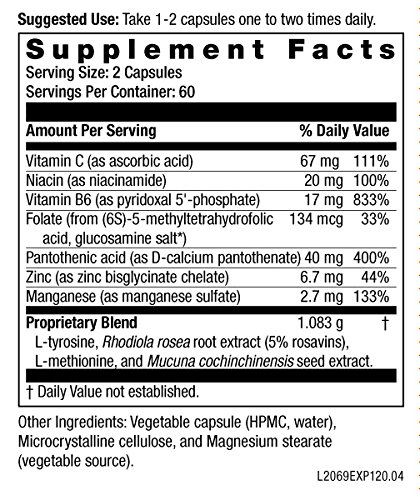 Contains non-glandular ingredients important for adrenal health and reducing stress-induced fatigue* Provides more than three times the L-tyrosine and six times the Rhodiola per capsule compared to AdreCor.