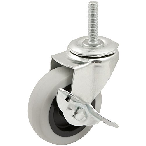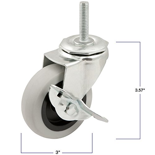 Heavy Duty TPR Rubber Caster Wheel with Swiveling Threaded Stem w/ Brake - 3-Inch - 110 lb. Load Capacity - Non-Marking for use in Hospitals, Food Service, & Other Institutional Applications