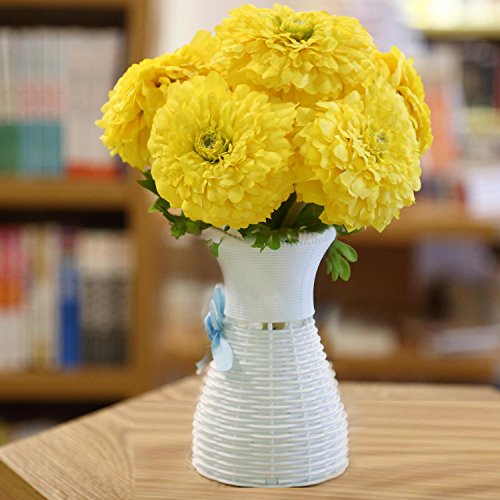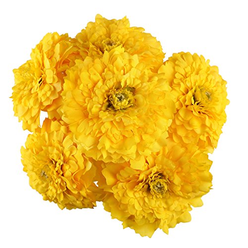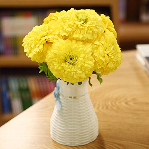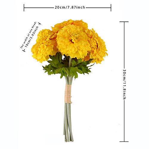 ADolinGo Artificial Flowers Simulation Chrysanthemums Real Touch 6Heads Bouquet Wedding Decor (Yellow)