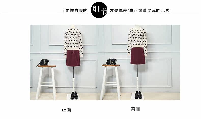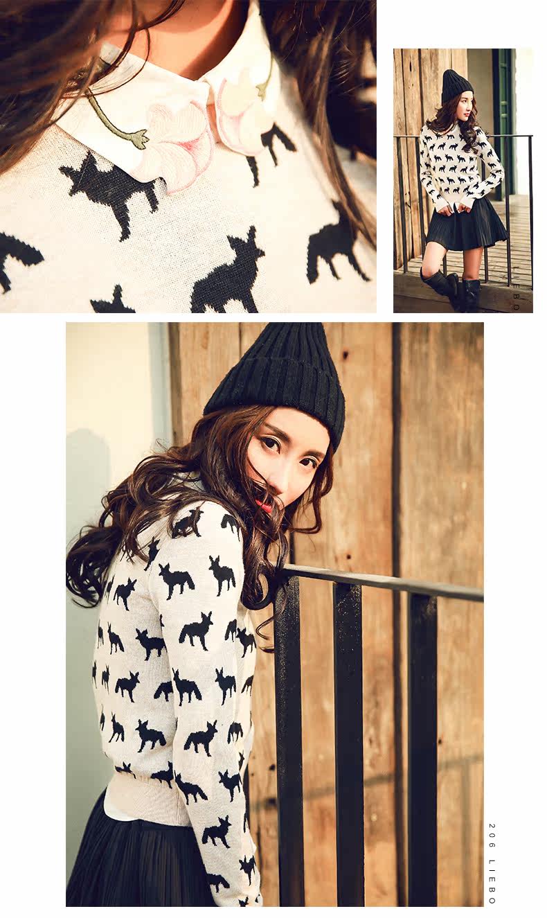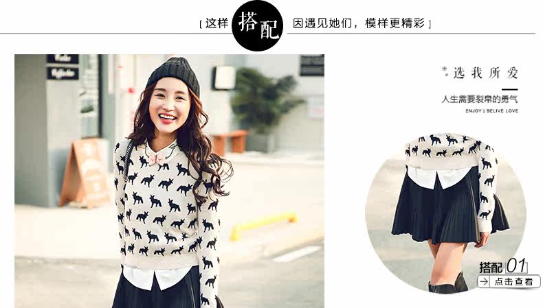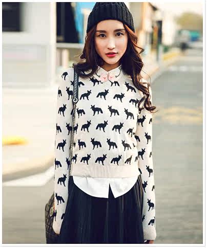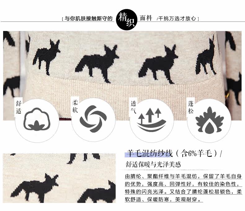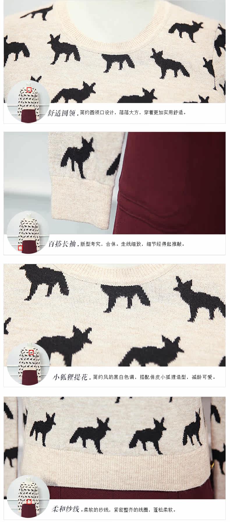 圆领小狐狸印花套头针织衫