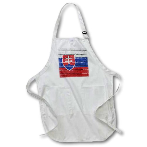 3dRose apr_156987_2 National Flag of Slovakia Painted Onto a Brick Wall Slovakian Medium Length Apron with Pouch Pockets, 22 by 24-Inch