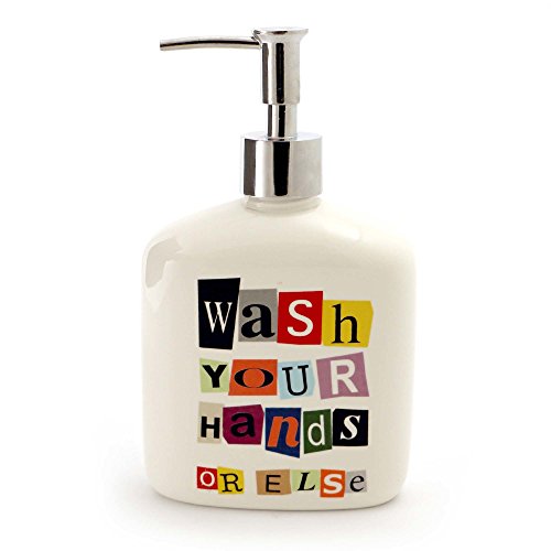 Enesco “Wash Your Hands” Note Stoneware Soap Dispenser, White