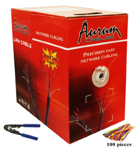 Aurum Cables CAT6 - 24 AWG - 1000 ft White Ethernet Network Cable - Copper Clad Aluminum (CCA) - With Crimp Tool - 550 Mhz - Pull Out box - White Cable - RJ45 Plugs included