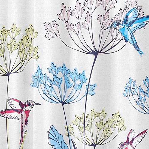 - Hummingbird and flower fabric shower curtain adds a touch of nature to your bath décor