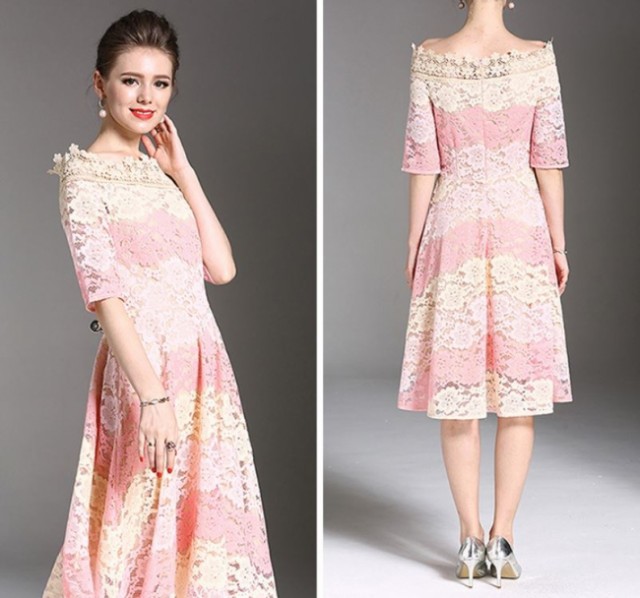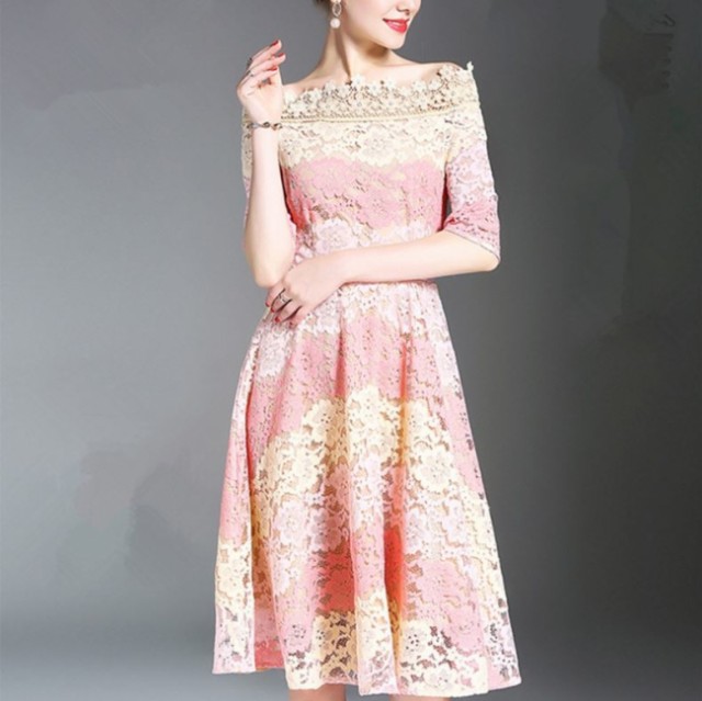 花柄レースがエレガントでフェミニンなパーティードレス☆