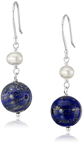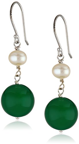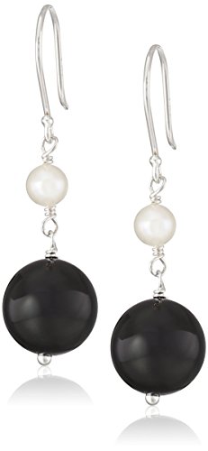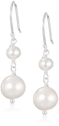-. Title : Round Bead and White Potato Freshwater Cultured Pearl Accent on Sterling Silver Drop Earrings