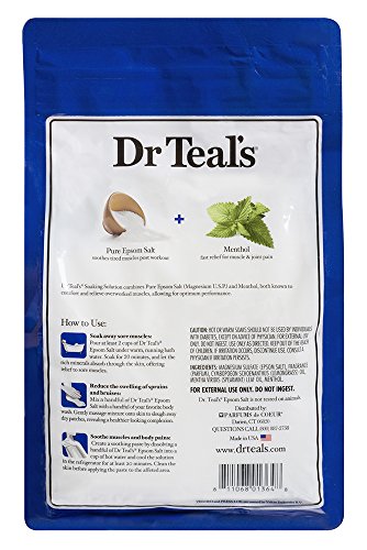 QUICK & EASY REGIMEN: To experience all the natural benefits of Epsom salt, pour at least 2 cups of Dr Teal's under warm, running bath water. Soak for at least 15 minutes for muscle relief and full body relaxation. For best results, repeat this regimen twice each week.