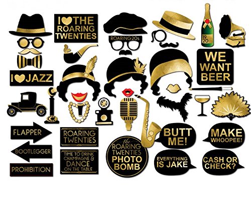 - GOLD RETRO DESIGN--It comes with a variety of cool props for Wedding such as mustaches, lips, hats, eyeglasses and so on, making your events and parties more interesting