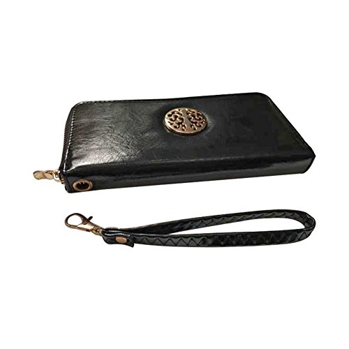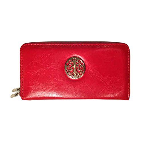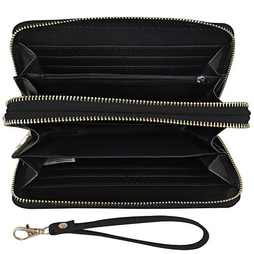 BELLO TUTTI Double Zipper wallet is a classic practical, which designed for the safety of your properties. solid-colored fabric lining,gold-tone hardware(not silver),with a removable 6 inch wrist strap.