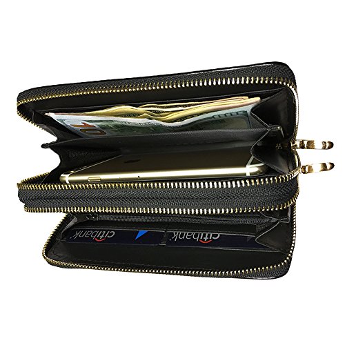 BELLO TUTTI Lady's Double Zipper Wallet with Compartment Coin Purse Black