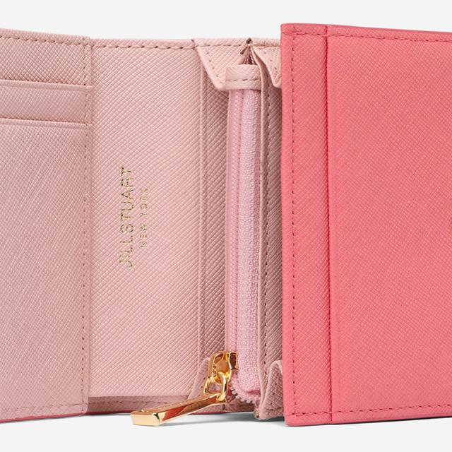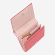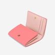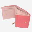 중앙의 하트 펜던트로 포인트를 주었으며 내부 핑크 배색으로 여성스러운 느낌을 살린 반지갑입니다.