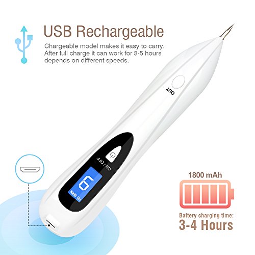 - ✔ FEATURES: This rechargeable mole removal pen was designed with built-in battery and overcharge protection. You can easily charge it via cellphone charger, power bank, or even a car charging port. Charging cable included. High capacity batteries offer about 5 hours of running time when fully charged. Comes with 2 coarse needles, 10 fine needles.
