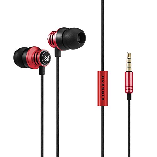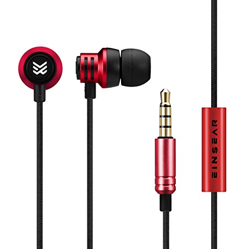 Yinyoo Original EINSEAR T2 In Ear Earphone Best 3.5MM Stereo In Ear headphones Dynamic Earbuds Aerospace aluminum alloy Earphone For Phone and Computer (red)