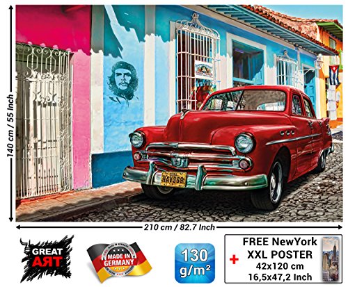 Old-timer in Havana Cuba photo wallpaper by GREAT ART Poster XXL Wall Decoration 210 cm x 140 cm