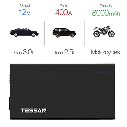 TESSAN 400A Peak Portable Car Jump Starter - 12V Car Battery Booster - Aluminum Power Bank Charger with LED Flashlight - for Car Truck Motorcycle