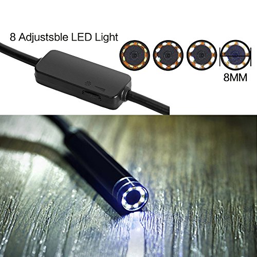 Wifi Endoscope Camera, Pococina USB Waterproof Borescope Inspection 2.0 Megapixels HD 8 LED Lights Snake Camera for Android and IOS Smartphone, Tablet (5 M)
