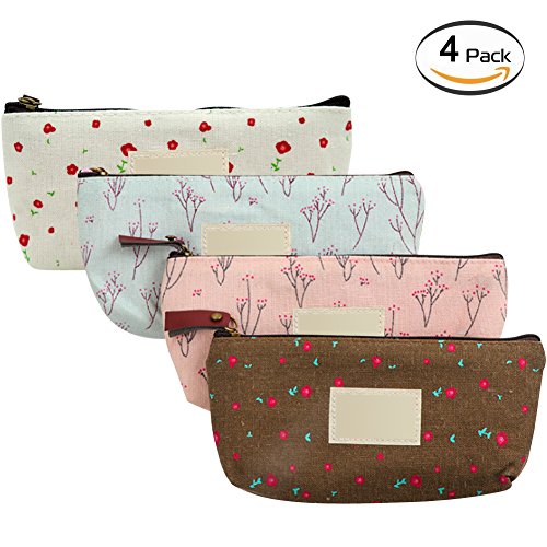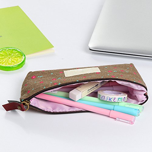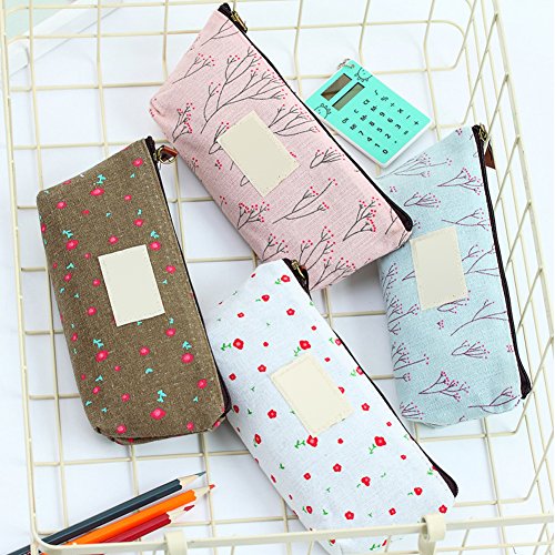 Bysiter Assorted Flower Floral Canvas Cosmetic Pen Pencil Pouch Countryside Calico Bags Case ,School Office Stationery Organizer,Card Holder,Coin,Cute...