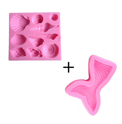 Kakasogo 2Pcs Small Fish Tail & Seashell Sea Life Silicone Mold for Fondant Chocolate Sugar Craft DIY Cake Candy Decoration Romantic Baking Mould