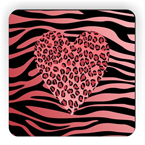 Rikki Knight Red Leopard Heart on Zebra Background Design Square Fridge Magnet