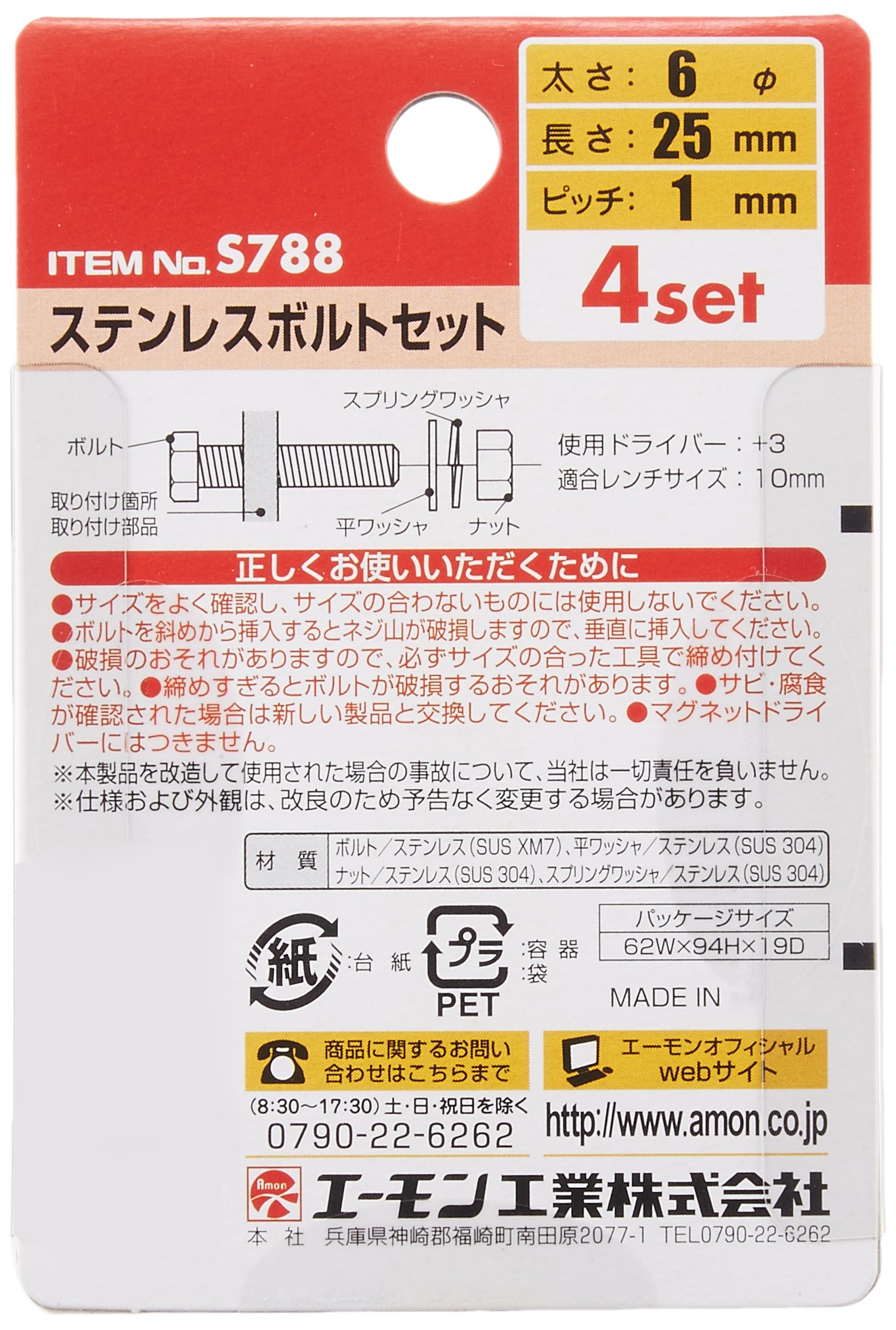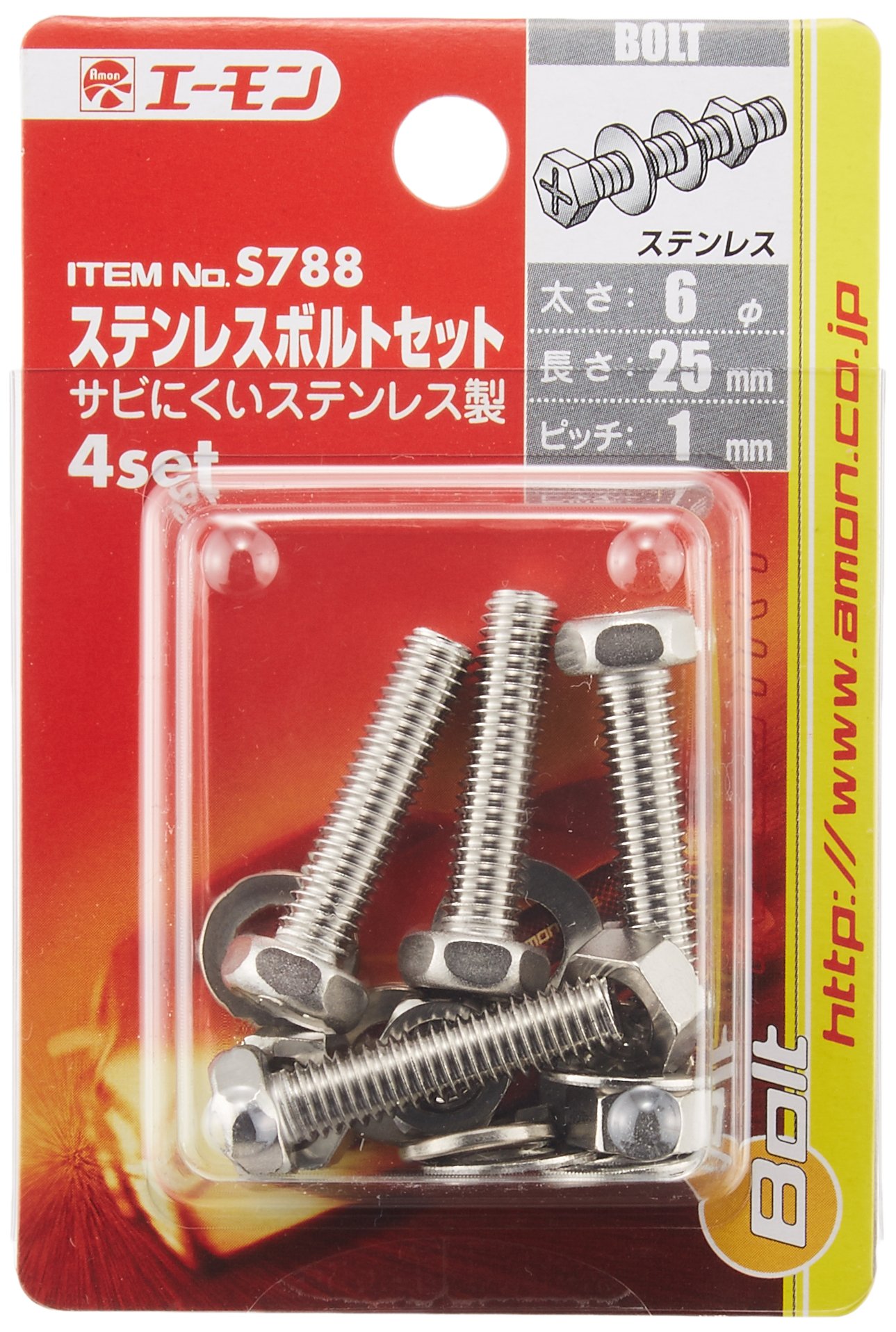 Amon S788 stainless steel bolt set 6φ × 25mm