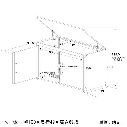 | サイズ | 【本体】(約)幅100×奥行49×高さ69.5cm、【内寸】(約)幅95×奥行41.5×高さ63cm 個装サイズ:101×66×9cm |