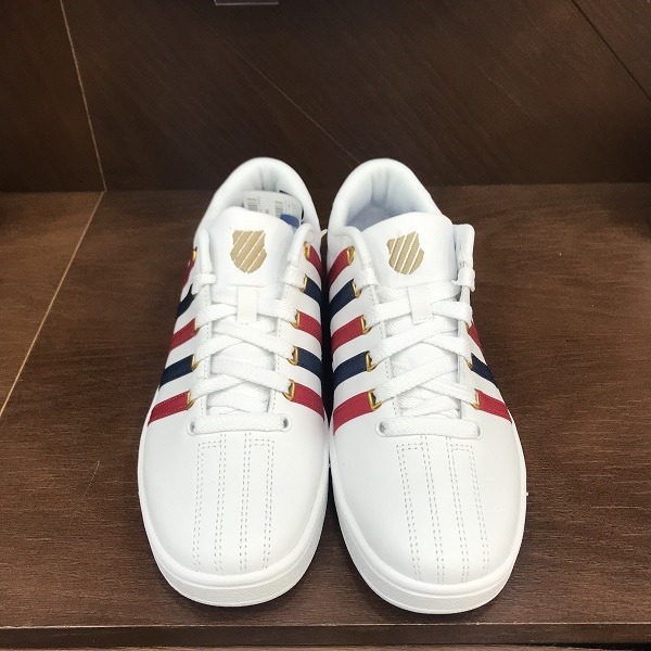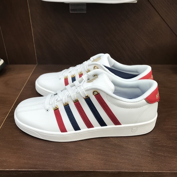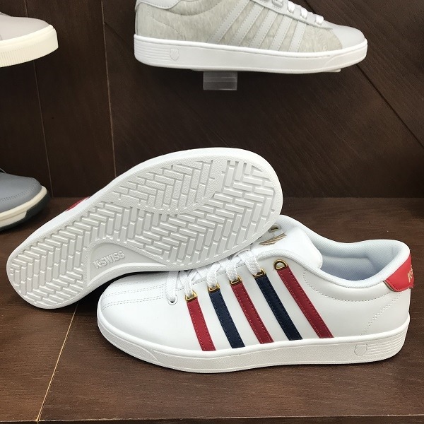 오리지널 스타일의 오선을 통해 K-SWISS 브랜드 헤리티지를 표현하는 깔끔한 디자인. 천연소가죽과 인조가죽을 활용하여 내구성을 강화함. 합리적인 가격까지 더해져 큰 사랑을 받은 K-SWISS의 히트 아이템.