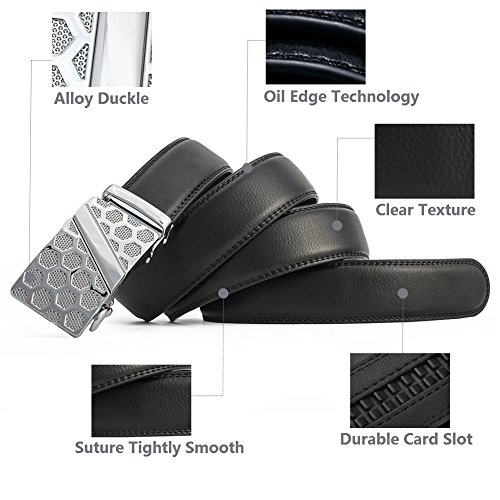 ①DURABILITY&DESIGN: The Ratchet Belt Is Crafted from Genuine Quality Leather and Complimented with A Scratch-Resistant Elegant Buckle. Leather Strap Is 1 3/8 in Wide with Complementary Designer Buckle. Stylish Sleek Design, Highest Quality Men Leather Belts