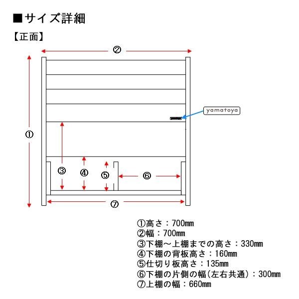 | 仕様 | 完成品 耐荷重:(各段)10kg、(下棚)30kg |