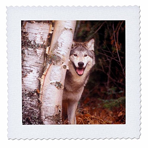 3dRose Gray Wolf in a Forest Quilt Square, 8 x 8"