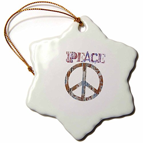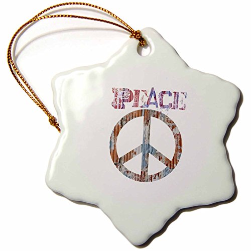 3dRose orn_29359_1 Multi Color Peace Sign Art Symbols Inspirational-Snowflake Ornament, Porcelain, 3-Inch