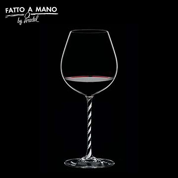 | ヴェネチアンガラスの伝統技法を用いたツイストステムのグラス。イタリア語で「手作り」を意味する(ファット・ア・マーノ)は、これまでのリーデルグラスとは異なる新しいプロセスで作られています。ヴェネチアンガラスの技法で「手作り」された白と黒のツイストステムに、機械による吹きガラスのボウルを結合することで、「職人の手で作られたステムの感触、ワインの個性を引き出すボウル」が誕生しました。 |